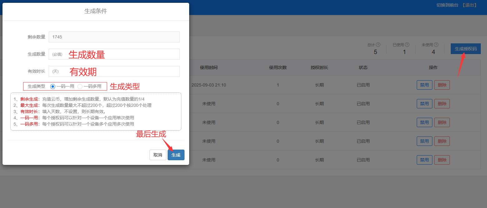 打开内测分发--授权码管理--生成你需要的授权码--授权码安装使用