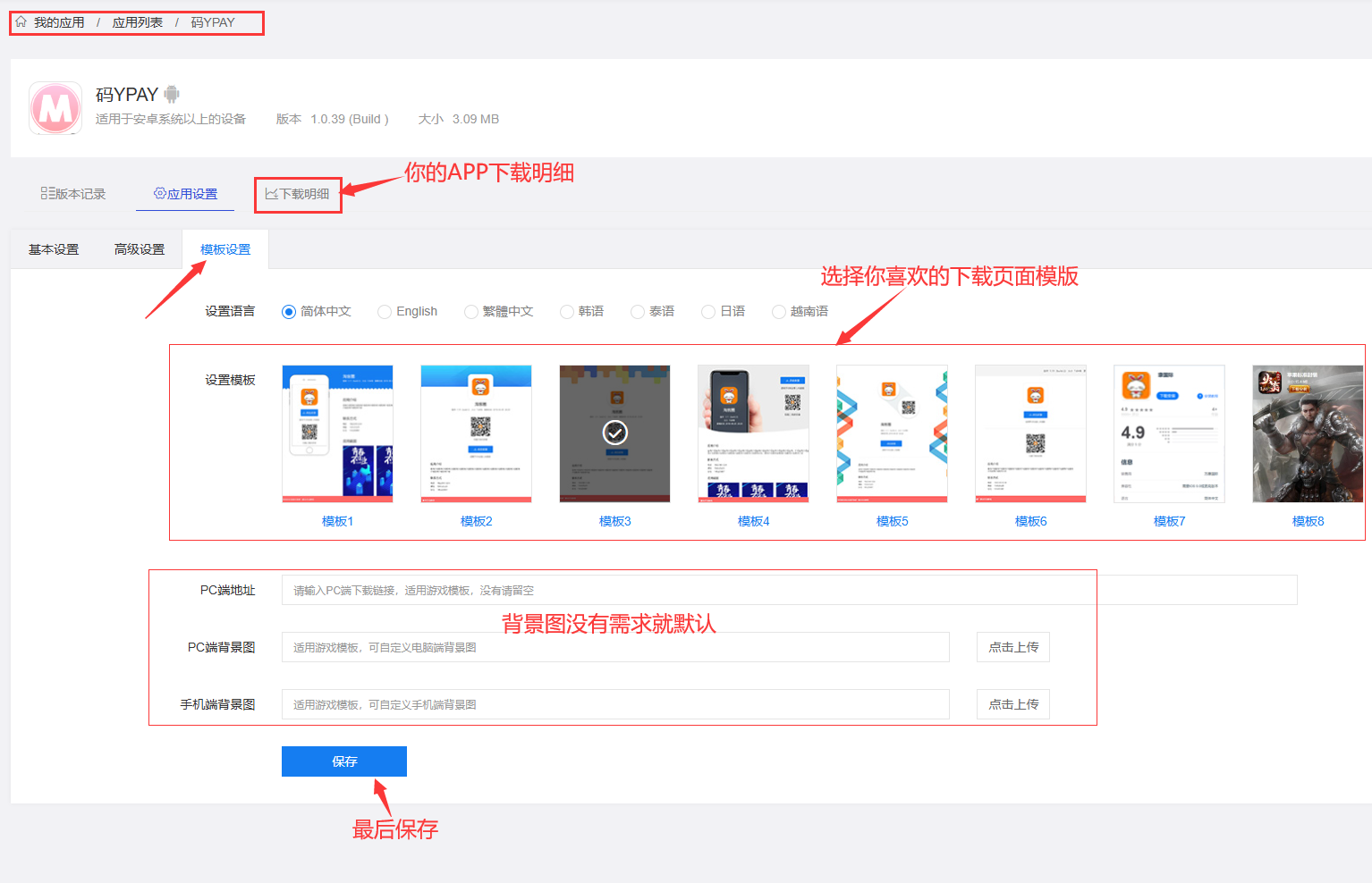 模版设置