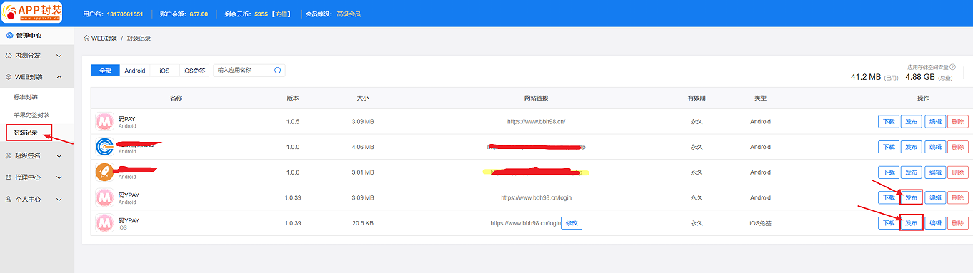 全部封装完之后去发布APP,获取下载地址